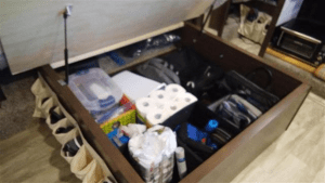 Which of these two under-bed storage areas give you a better impression of how the current owner may have taken care of their RV?